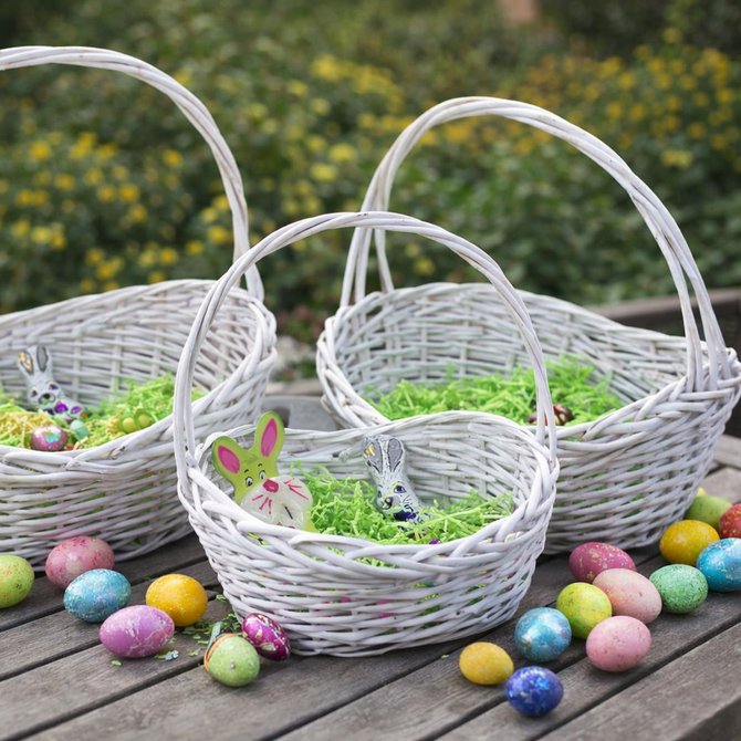 S našimi klasickými dárkovými košíky budou Velikonoce ještě kouzelnější. Dekorativní košíky jsou ideální pro velikonoční hledání vajíček na zahradě, k naplnění sladkostmi nebo jako pečlivě připravený velikonoční košík pro rodinu a přátele. Díky nadčasovému designu z pleteného proutí se perfektně hodí ke každé jarní a velikonoční dekoraci. Pevné ucho zajišťuje, že i malí velikonoční zajíčci mohou svůj nález pohodlně odnést. Ať už pro velké hledání vajíček na zahradě, jako tip na dárek nebo jako dekorativní prvek na velikonočním stole – tyto košíky zaručeně přinesou velikonoční radost.